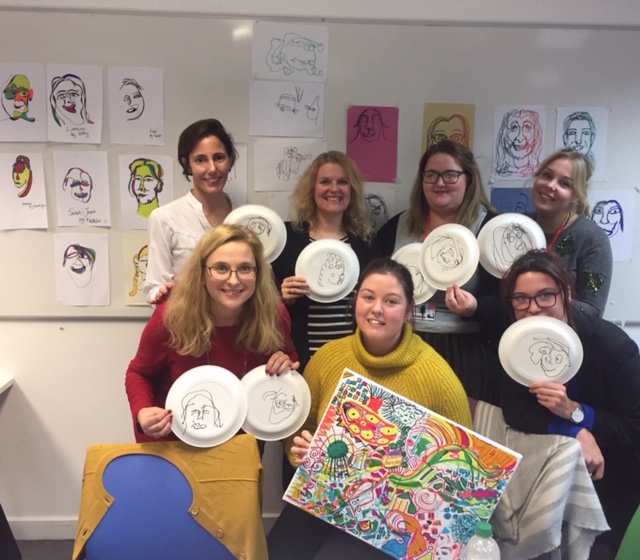 I’ve just done a drawing workshop for a Christmas staff party at Kings College which was great fun and good to be reminded of how fast we can all draw when we play and set our brains free!