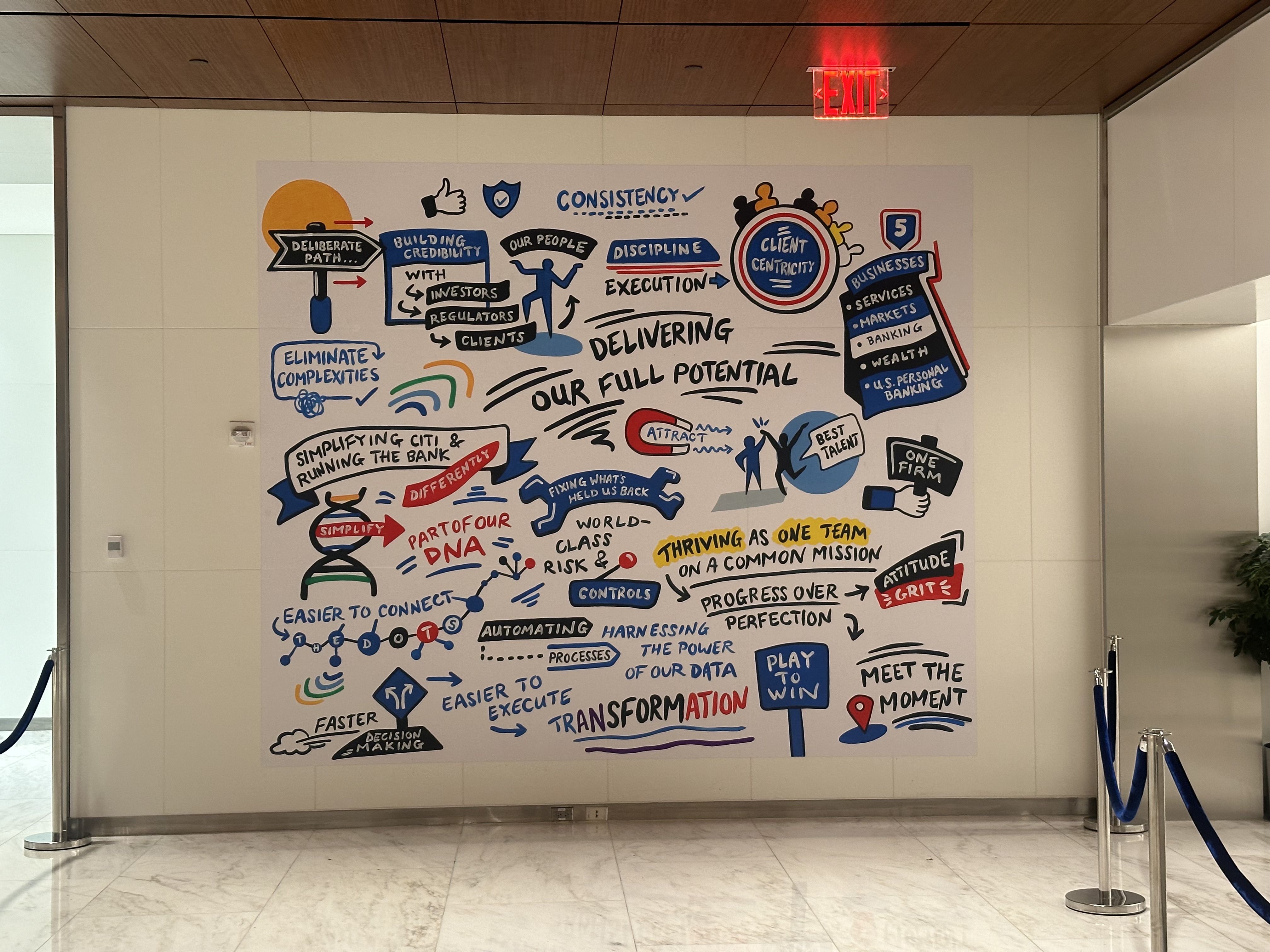 I am really pleased to see my two mural designs up in the Citi bank HQ in New york. They were designed and drawn by me and then executed and painted onsite by the excellent Astro Murals.