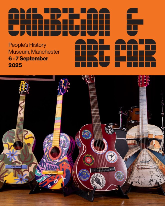 This is a collaboration between Wild in Art and Manchester City Council, and it’s all for a great cause – raising funds for grassroots music venues and community music projects across Manchester through a final auction of the guitars.