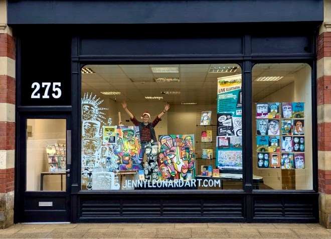 For one month, the window has a showcase of my original artworks, turning a prominent Deansgate frontage into my own little street-level gallery. All artworks featured in the window are available to buy. The work reflects my ongoing painting play, exploring colour, form, and expressive faces, and hopefully will be enjoyed by the everyday audience that moves through this busy city location.