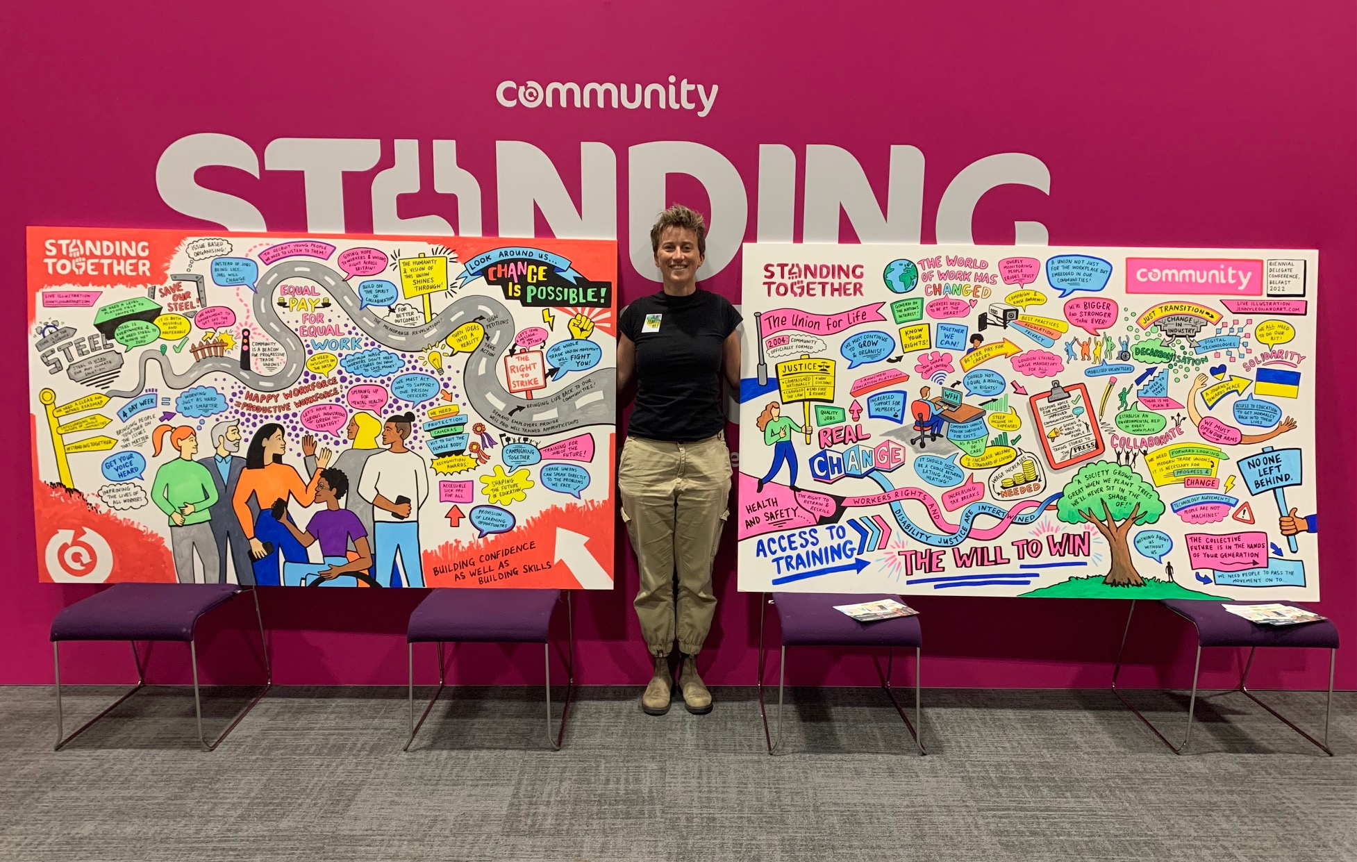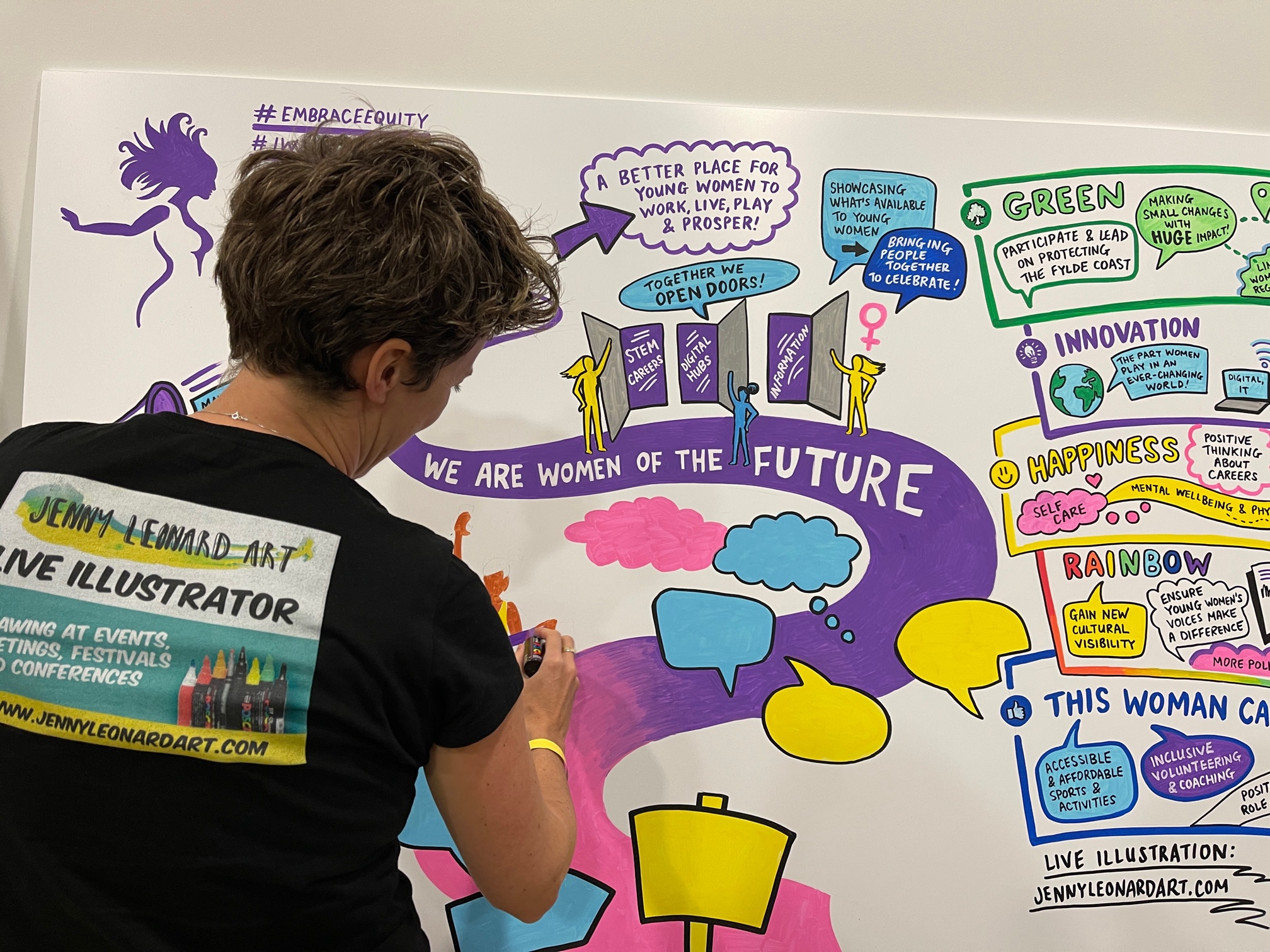 Live scribe artist based in Manchester offering real-time event sketching & graphic recording at your conferences, meetings and events. Whether I’m drawing live on large boards at the venue using ink pens, or capturing key quotes and illustrations digitally on an iPad during a virtual meeting, my live images help bring your conversations to life. Get in touch to find out more
