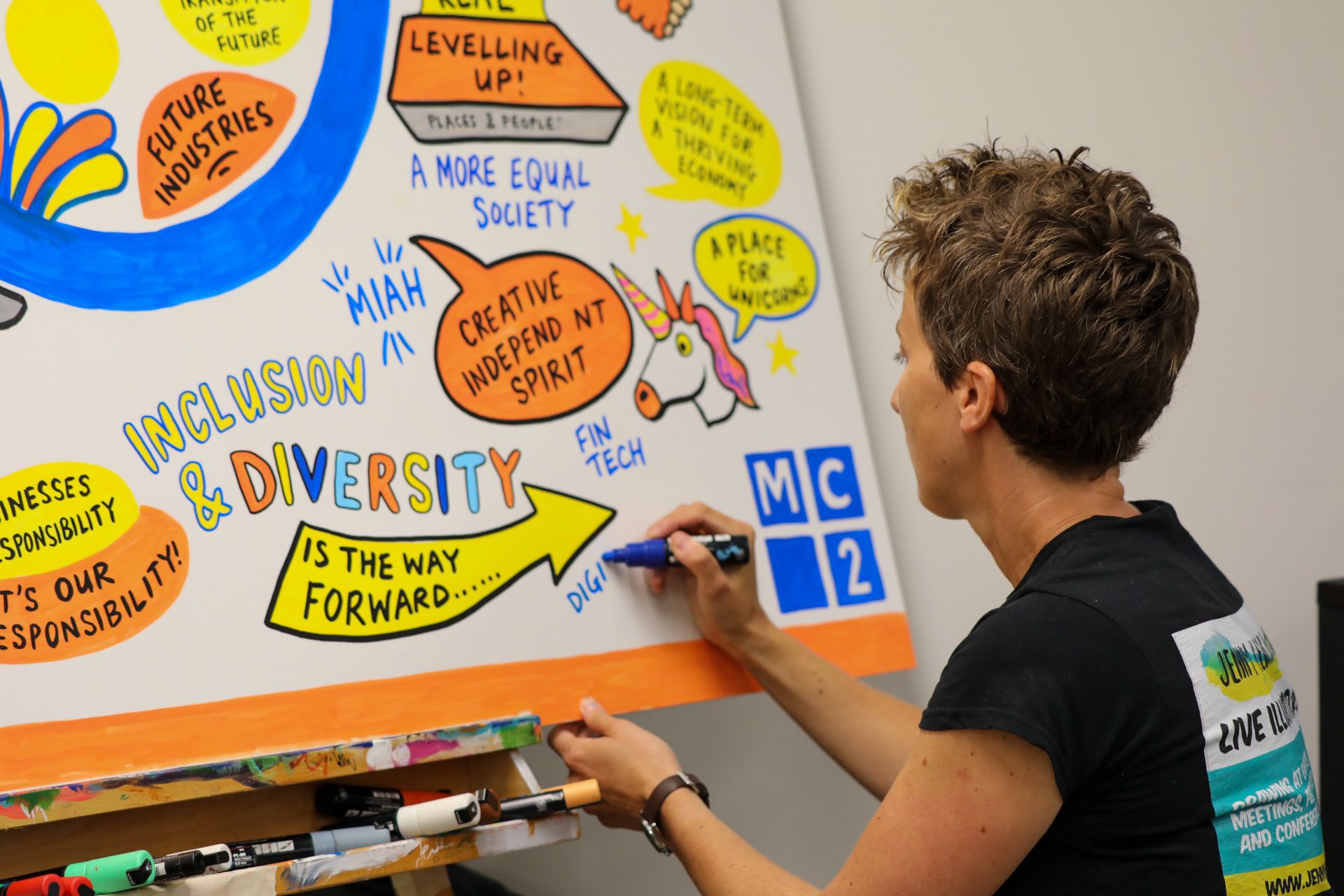Most importantly it helps you to communicate your message and you keep the final outcome to put up at your office. The finished piece is also sent to you digitally. From visually mapping your voice to summarising complex discussions, I help turn abstract thinking into clear, creative visuals that help people remember. Available for bookings across Manchester, the UK and internationally. Get in touch to find out more.