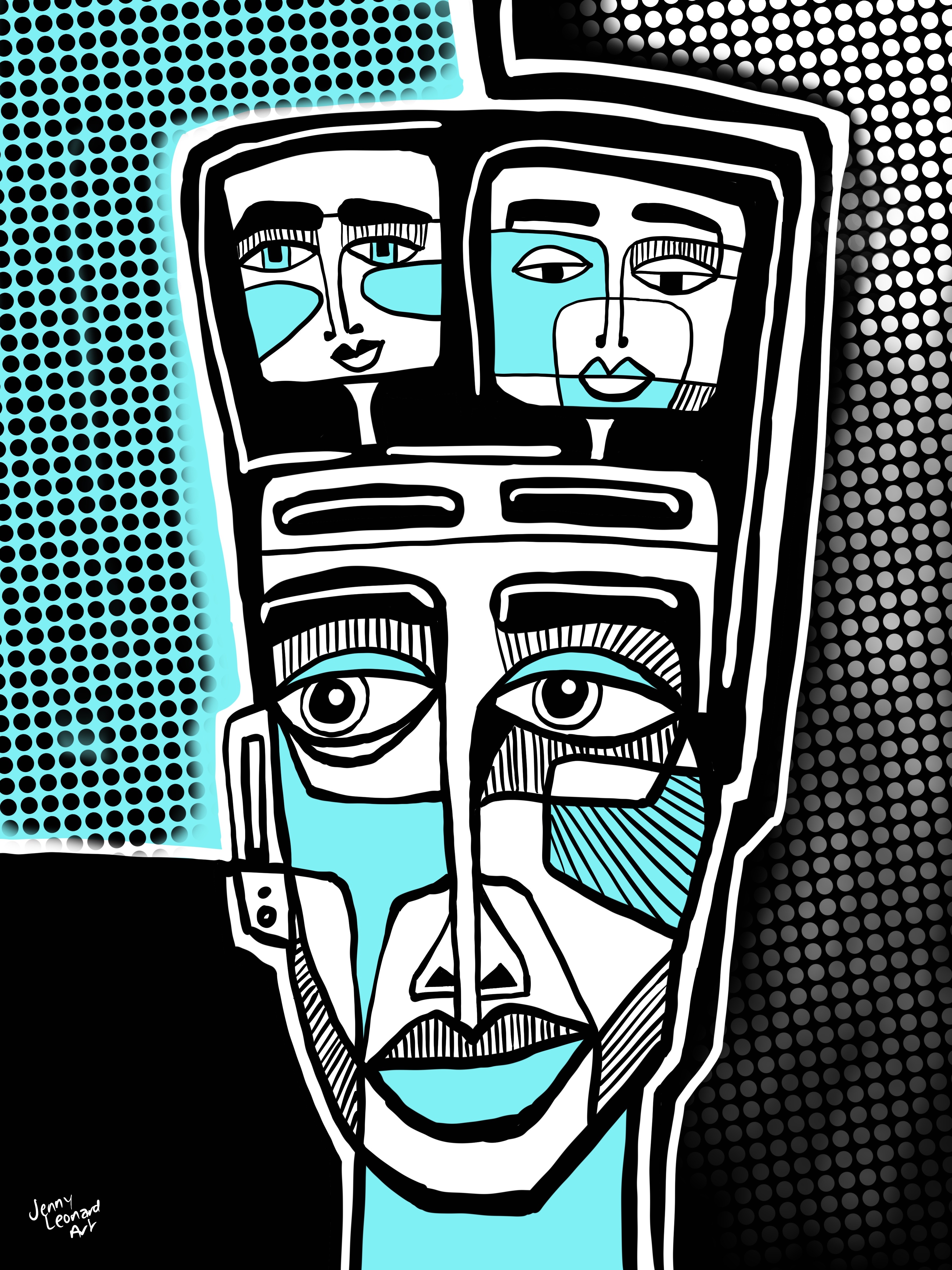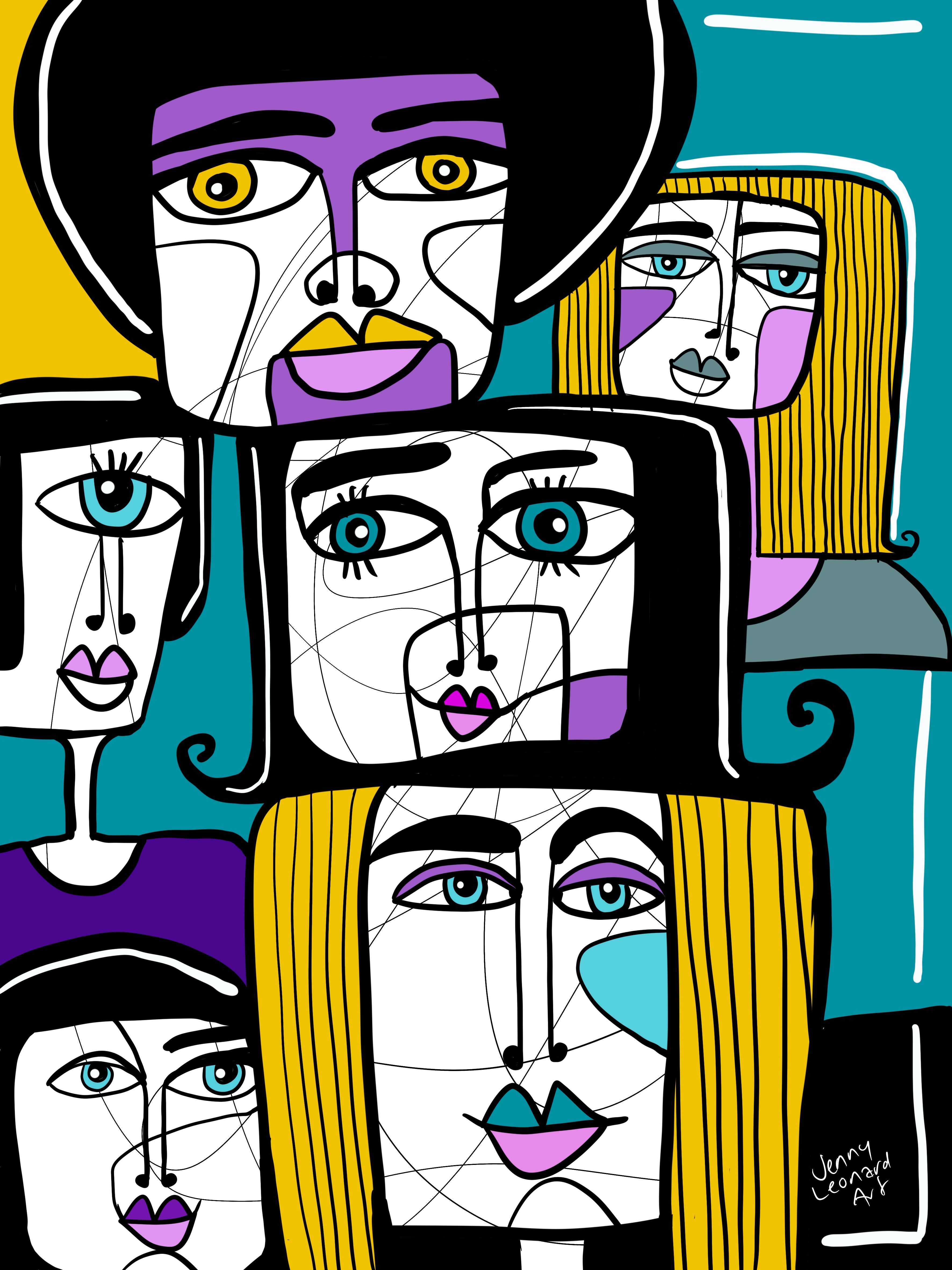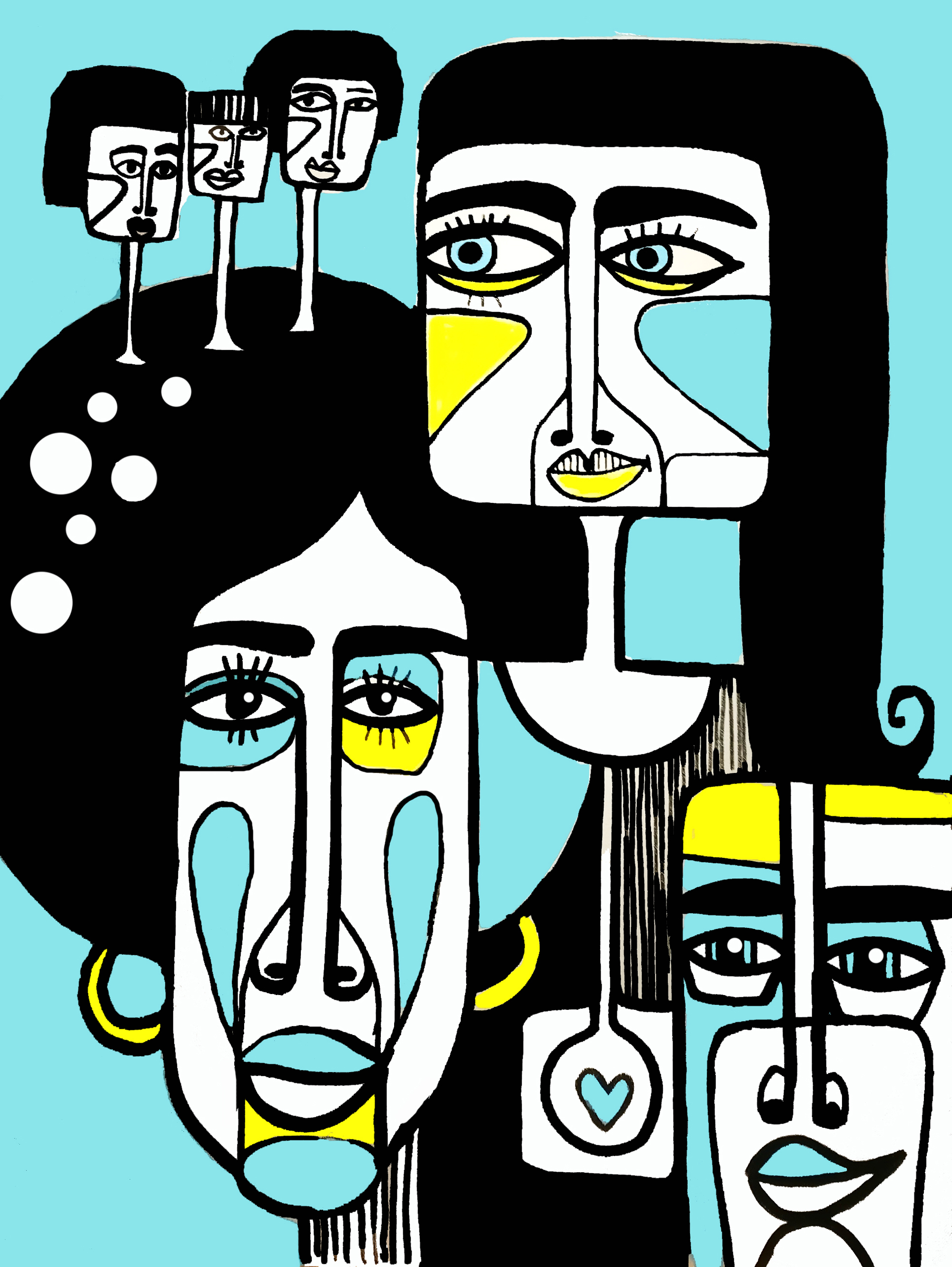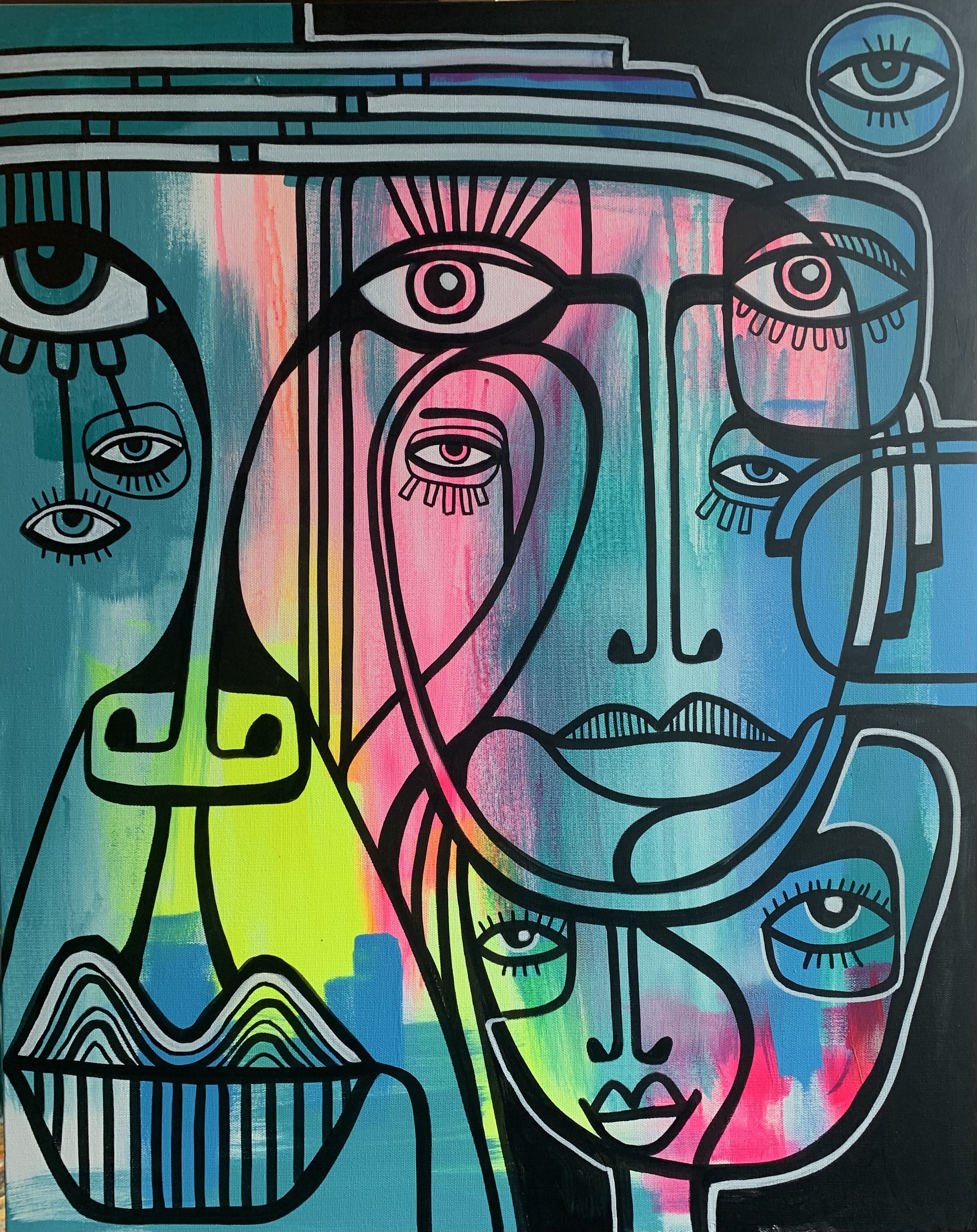 You might like my facey paintings and stuff. I am a commercial artist mainly working to set briefs but I do some of my own painting too. I currently have paintings available and for sale at The Counter House in Ancoats. I’m not very good at an ‘artist statement’ so I will say I just love to paint and play with lines and faces all from my imagination and see what falls out. If you like the look of them, thats wonderful, I think some of them are actually alright too.