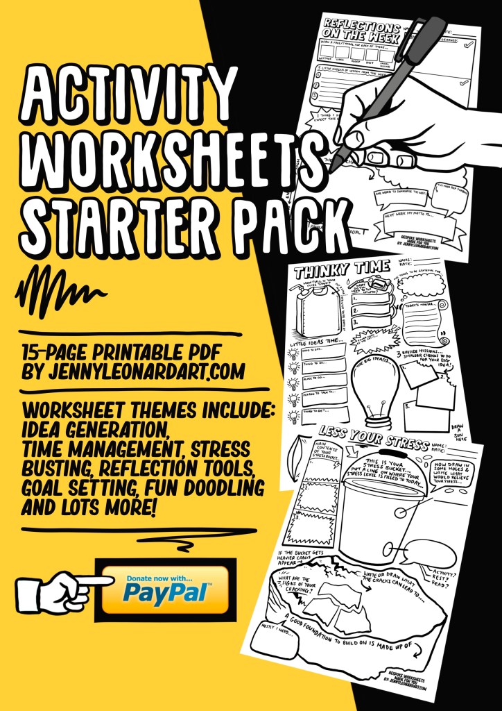 My Worksheets are here for you to scribble, write and doodle on. My first pack is a 15-page printable PDF and is sent to you with your small donation.
